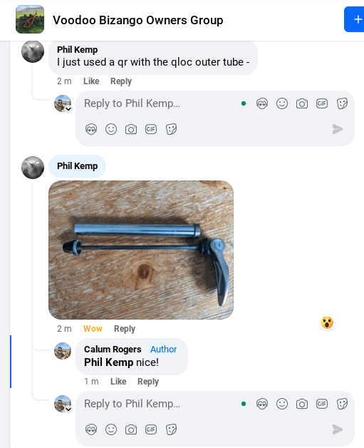 Phil Kemp in the Voodoo Bizango Owners Group shared his own fix; simply feeding a quick release skewer through the Q-Loc thru axle. I haven’t tried this out myself but I can’t think of any reason why it shouldn’t also be a permanent fix.