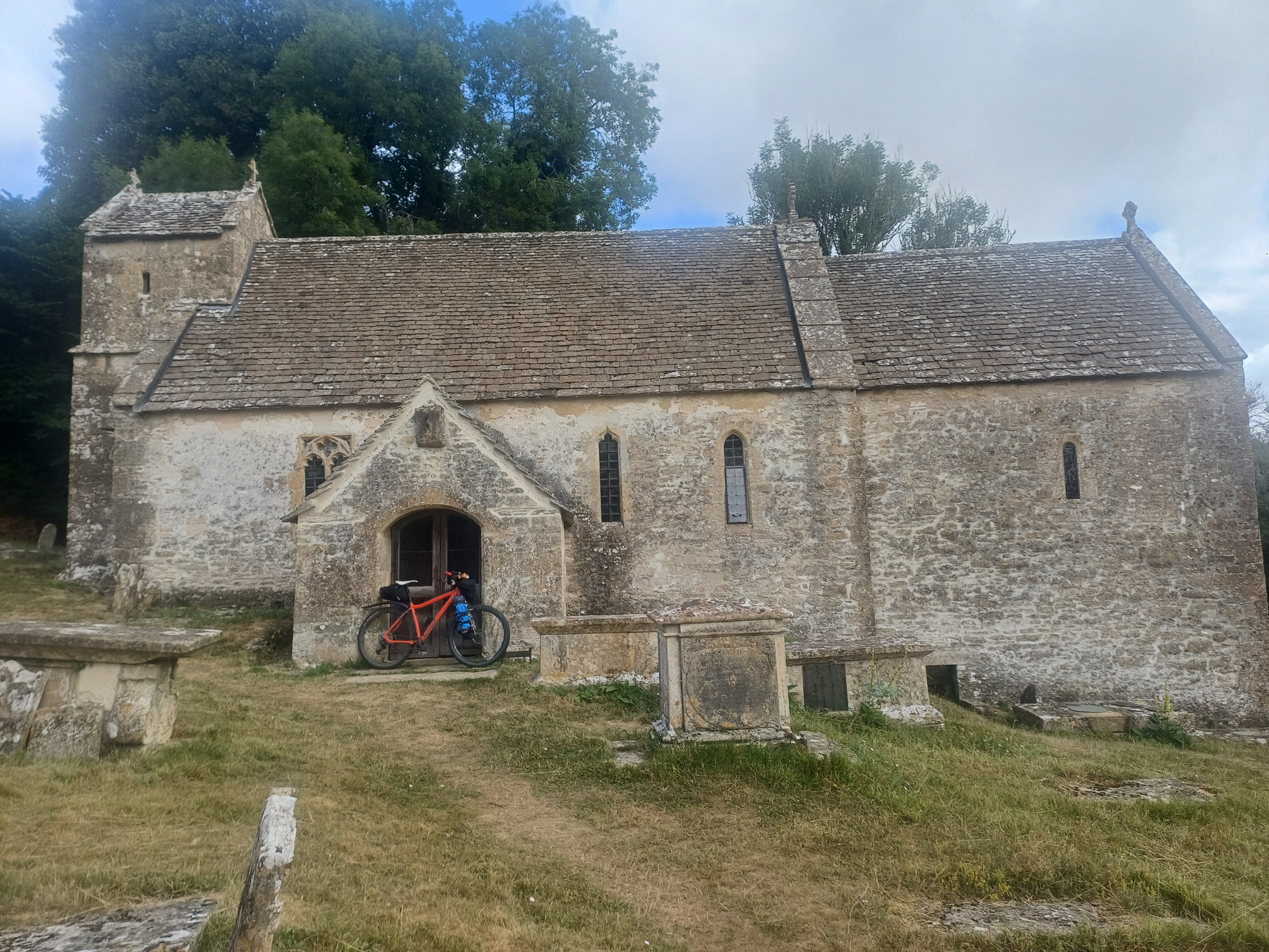 I gave it a bit of a nudge on day 1, as this is by far the hilliest day (82 kilometres with 1300 metres of climbing). Because of this, I had just the one proper pause, which was in Andoversford, at kilometre 58 (out of 82). It has a good shop (‘Dale’s Stores’) and a nice pub (‘The Royal Oak’) to swerve a shower at, with generous overhead coverage and comfy furniture. It was a great spot to discuss what we’d all learned from the route so far, with a few returnees having learned from previous Surly 100 iterations.