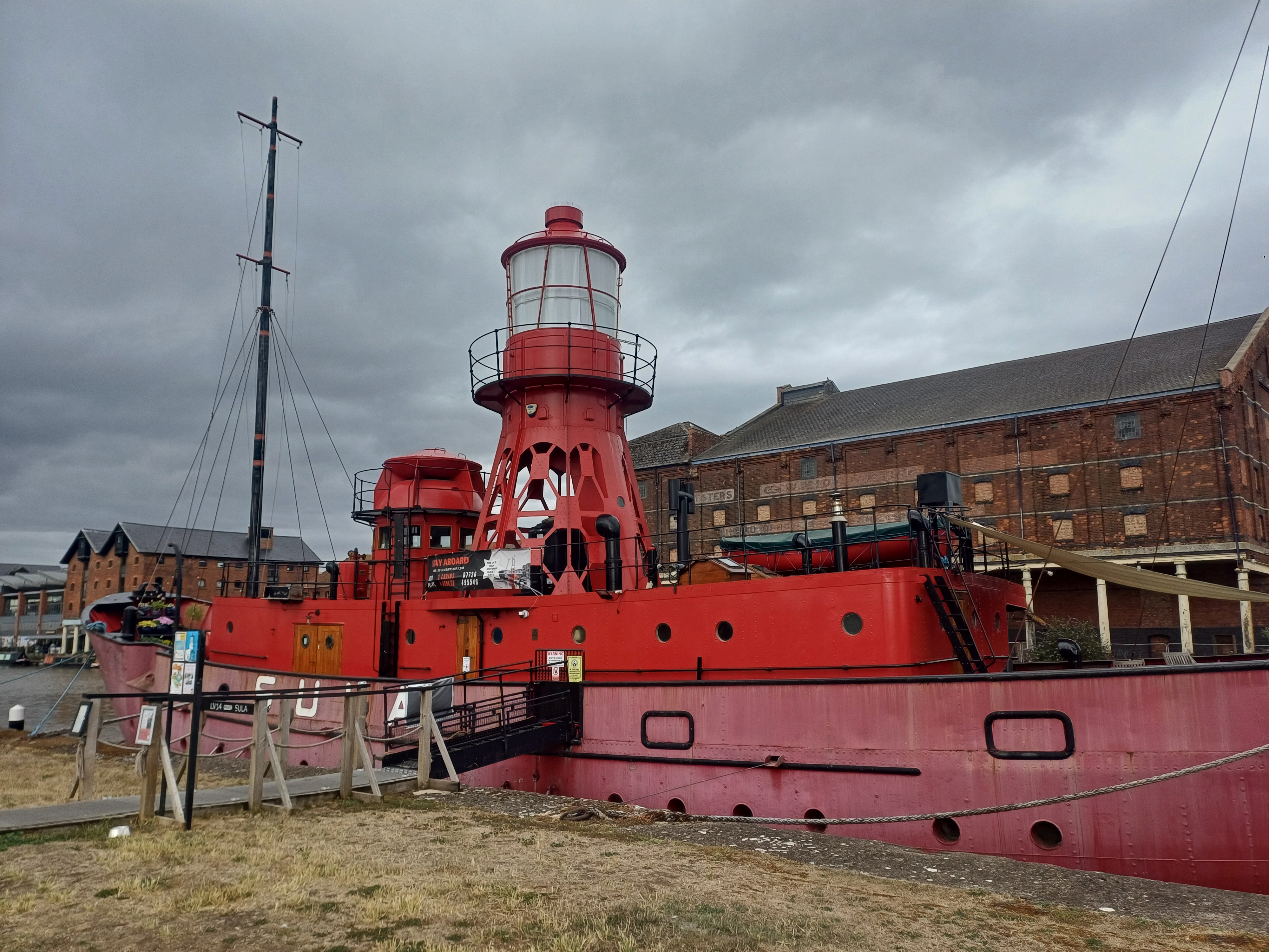 The final 15 kilometres or so of this ride are alongside the much wider Gloucester and Sharpness canal. This is a well-maintained and active waterway, with its own authority doing maintenance work to keep its towpaths cleared and trimmed. This canal goes right the way to Gloucester Docks. You wouldn’t realise it when you’re there, but this is the most inland port in all of Britain, and it has some delightful little vessels moored up there, including a lightship which you can rent as accommodation.