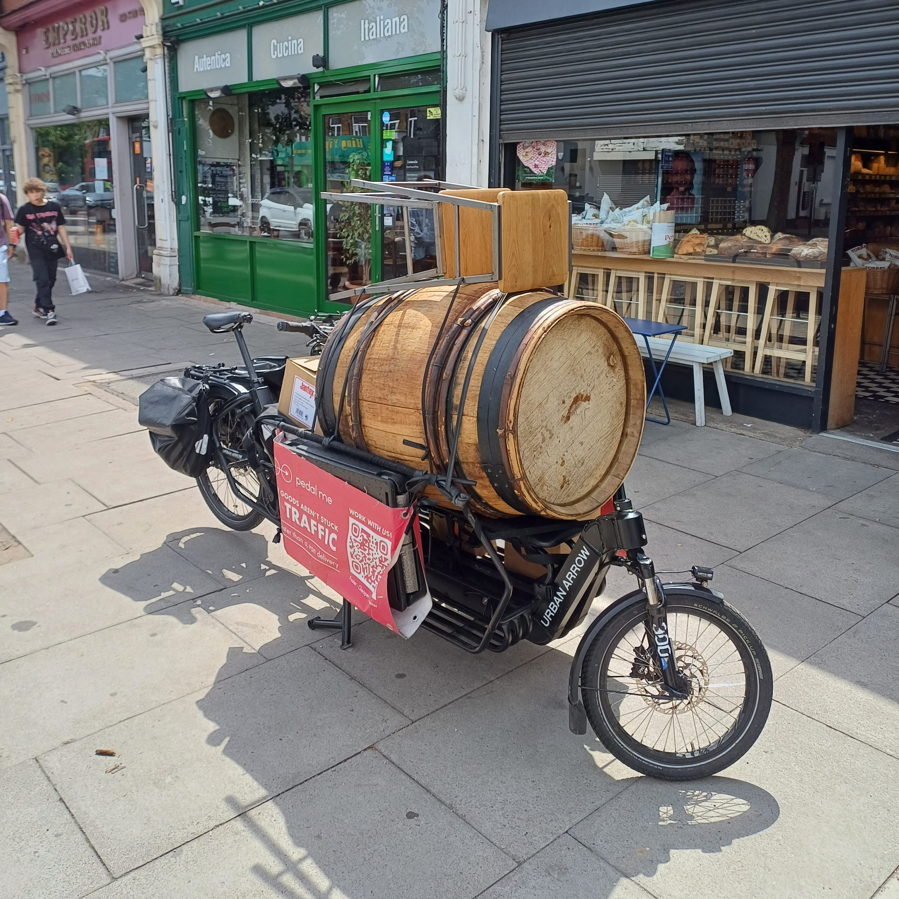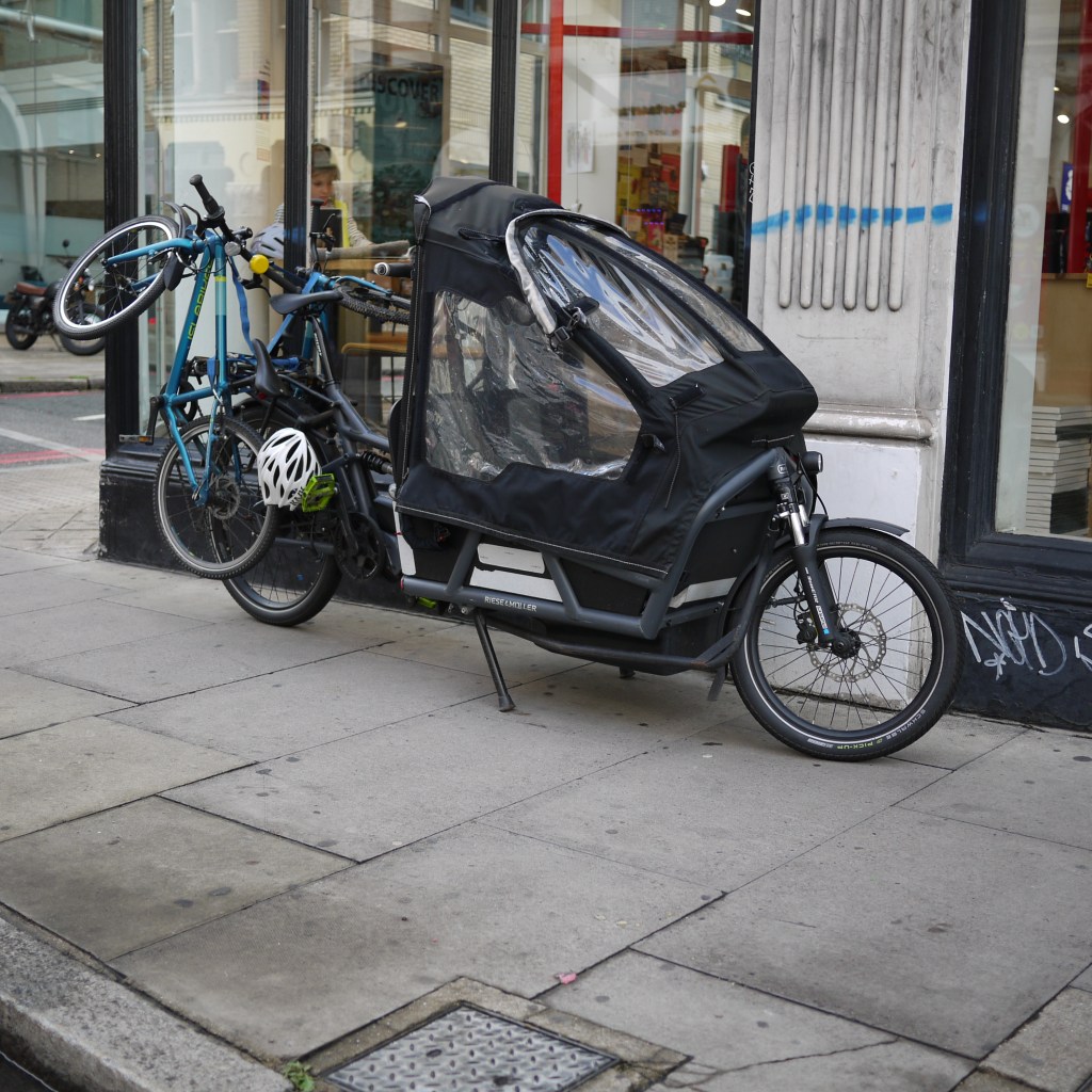 Urban Arrows XLs are predominant among e-cargo bike employers on the basis that they maximise the amount of cargo that can be carried, and in my then-employer’s case, they ostensibly enabled two passengers to go on the front. Other cargo bikes like the Riese & Muller models and Larry vs Harry Bullitt, or the Omnium, are around, but the Urban Arrow is currently on top for heavy and high volume movements. You’ll see them being used by the TFL Santander Cycle mechanics and Ocado Zoom crews.